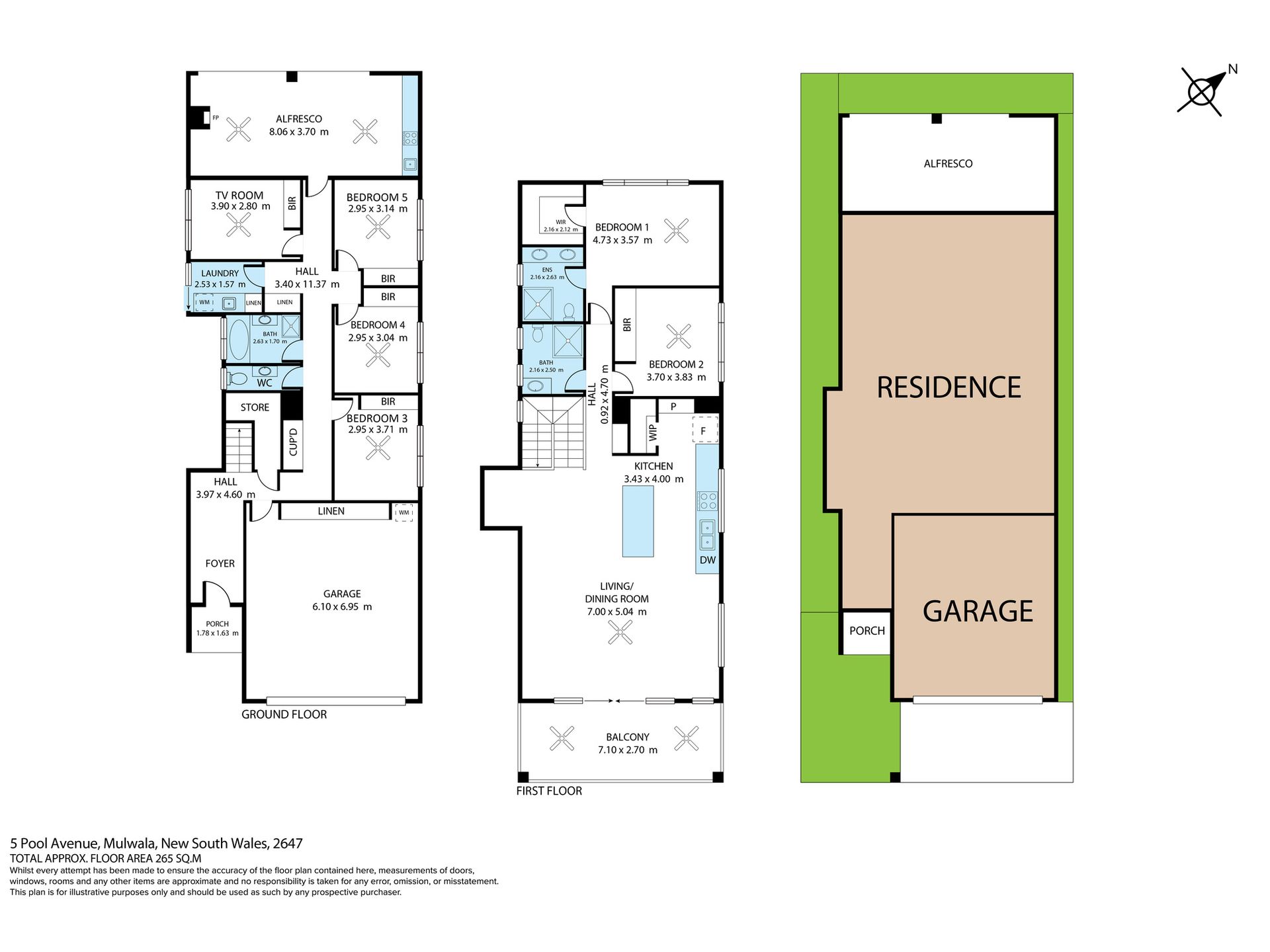 Inside, the home offers 5 generous bedrooms all with fans and robes. The master bedroom has a spacious walk in robe and ensuite.