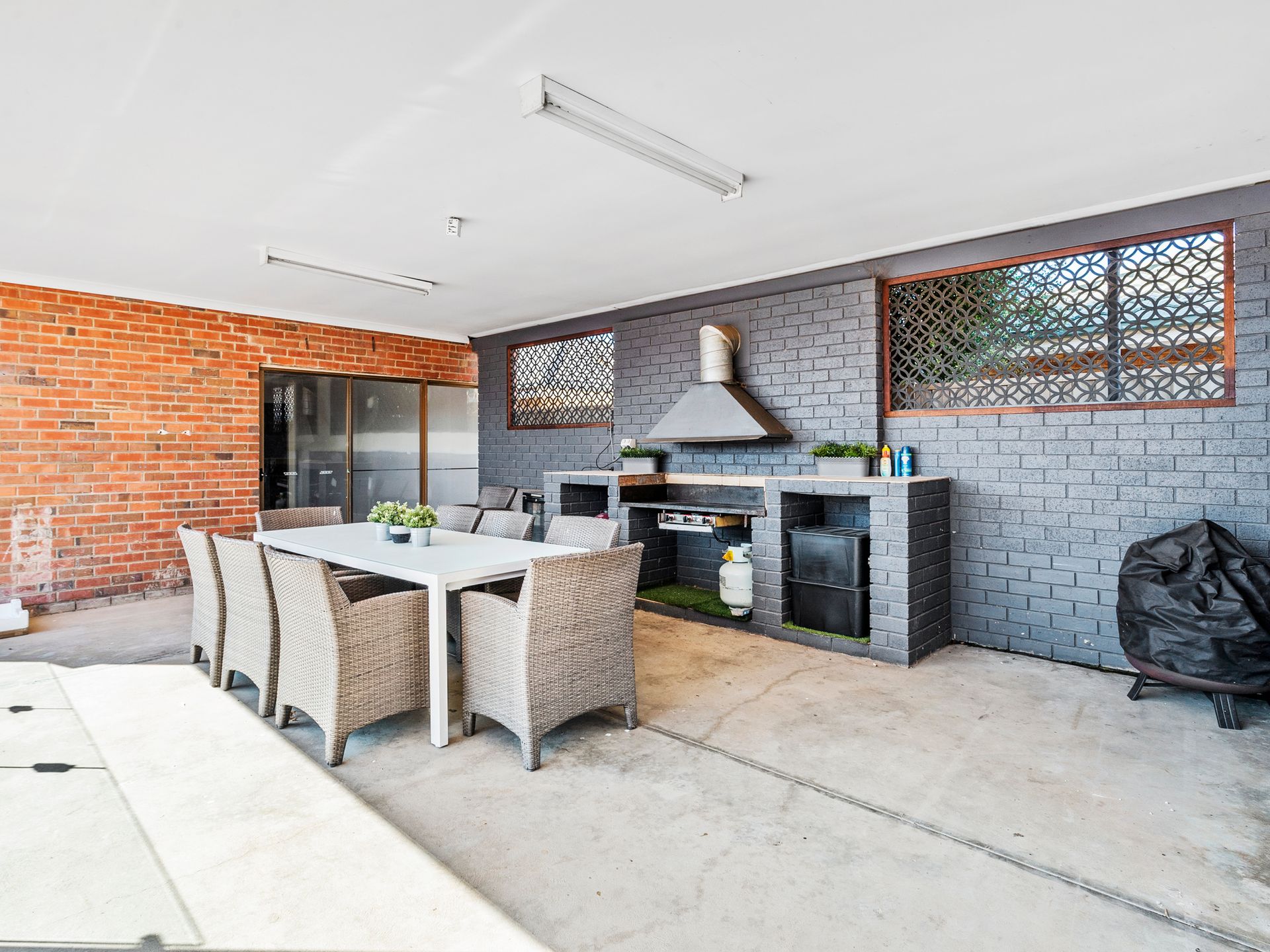 The covered BBQ/alfresco area is basically an outdoor living room with pool views.