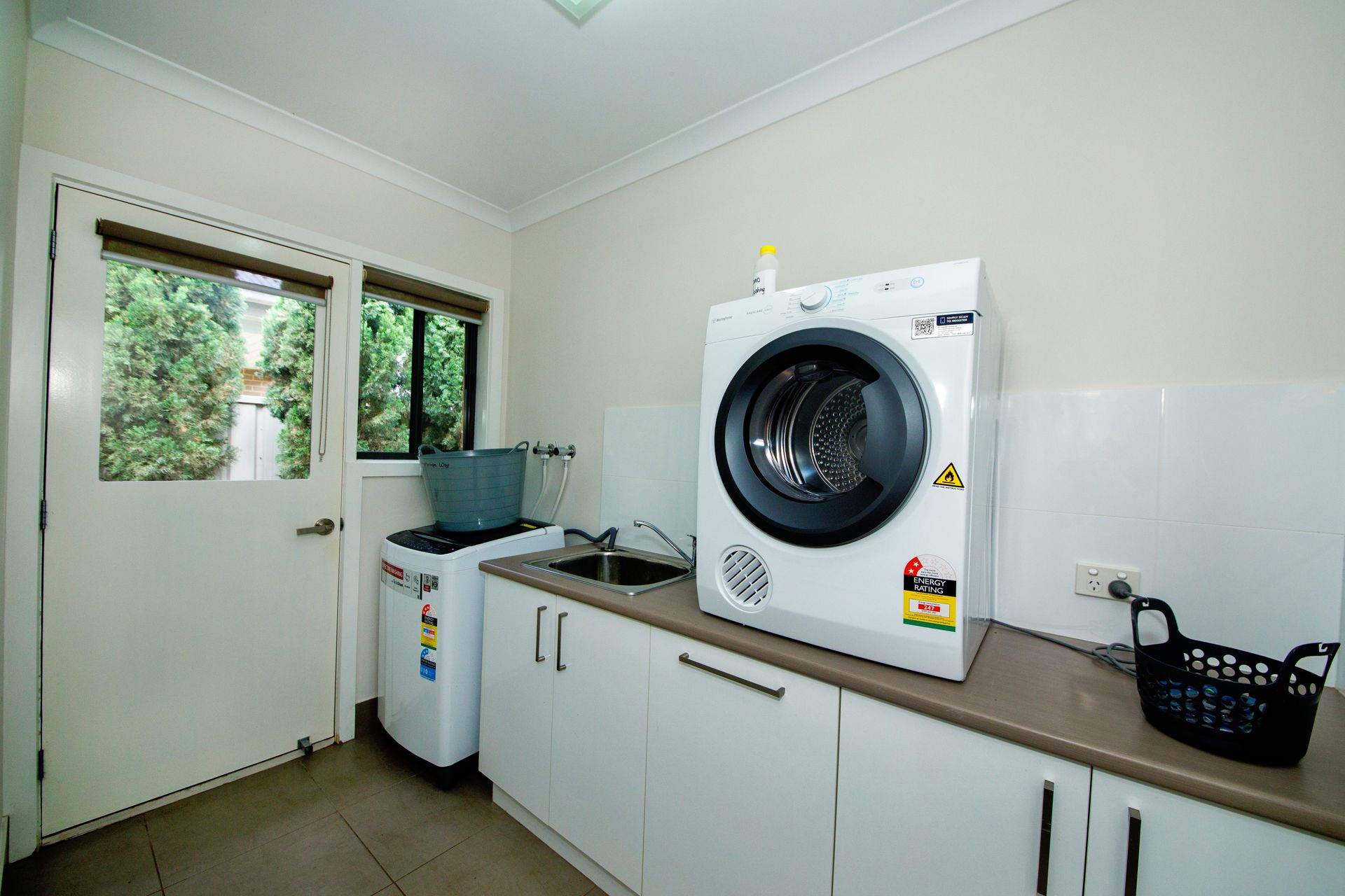 Laundry has washer and dryer.