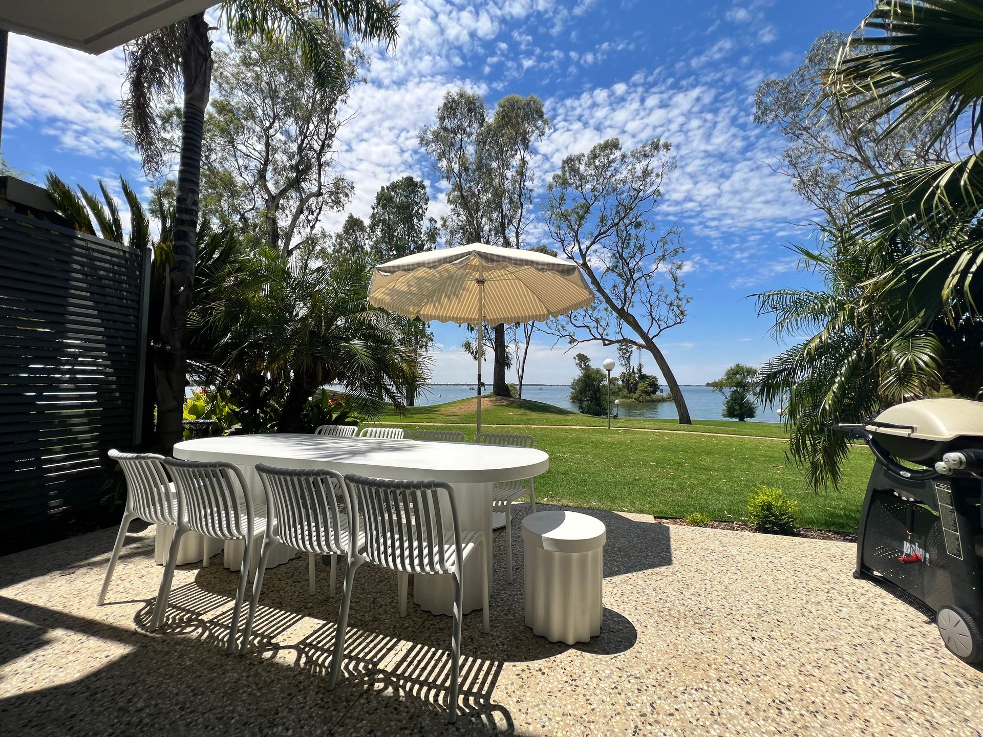 Step outside to your 6-seater outdoor setting and Weber BBQ, where you can enjoy breathtaking views of the lagoon and Lake Mulwala.